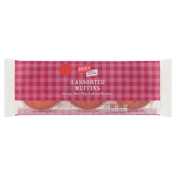 Jack's 3 Assorted Muffins Cherry, Choc Chip & Salted Caramel 273g